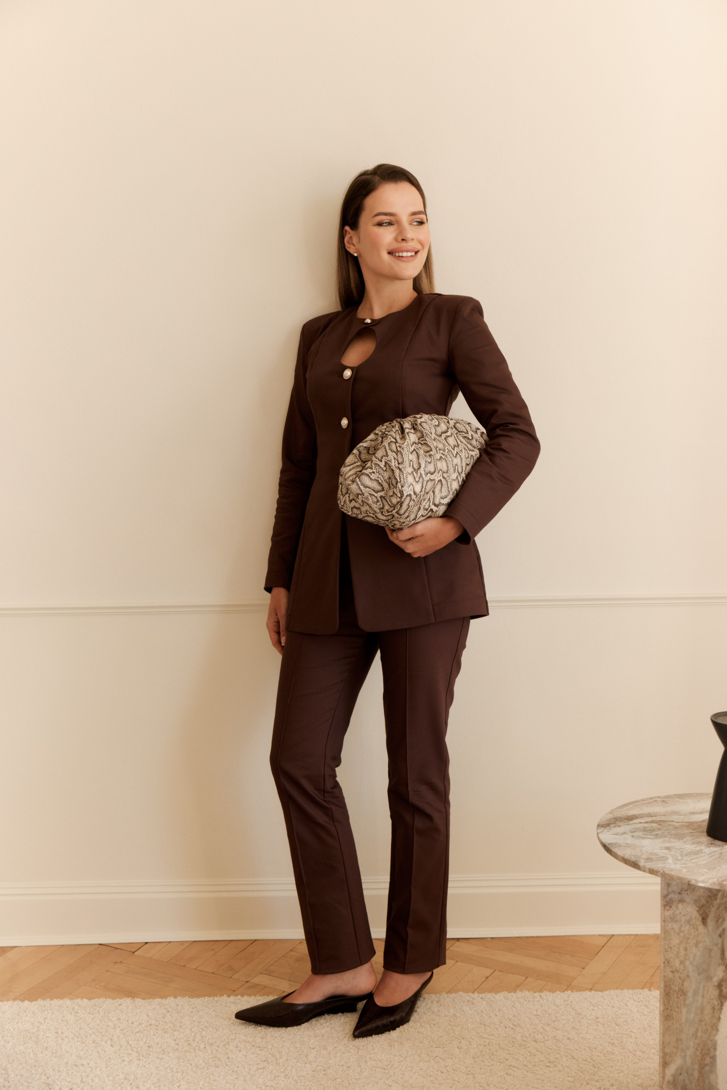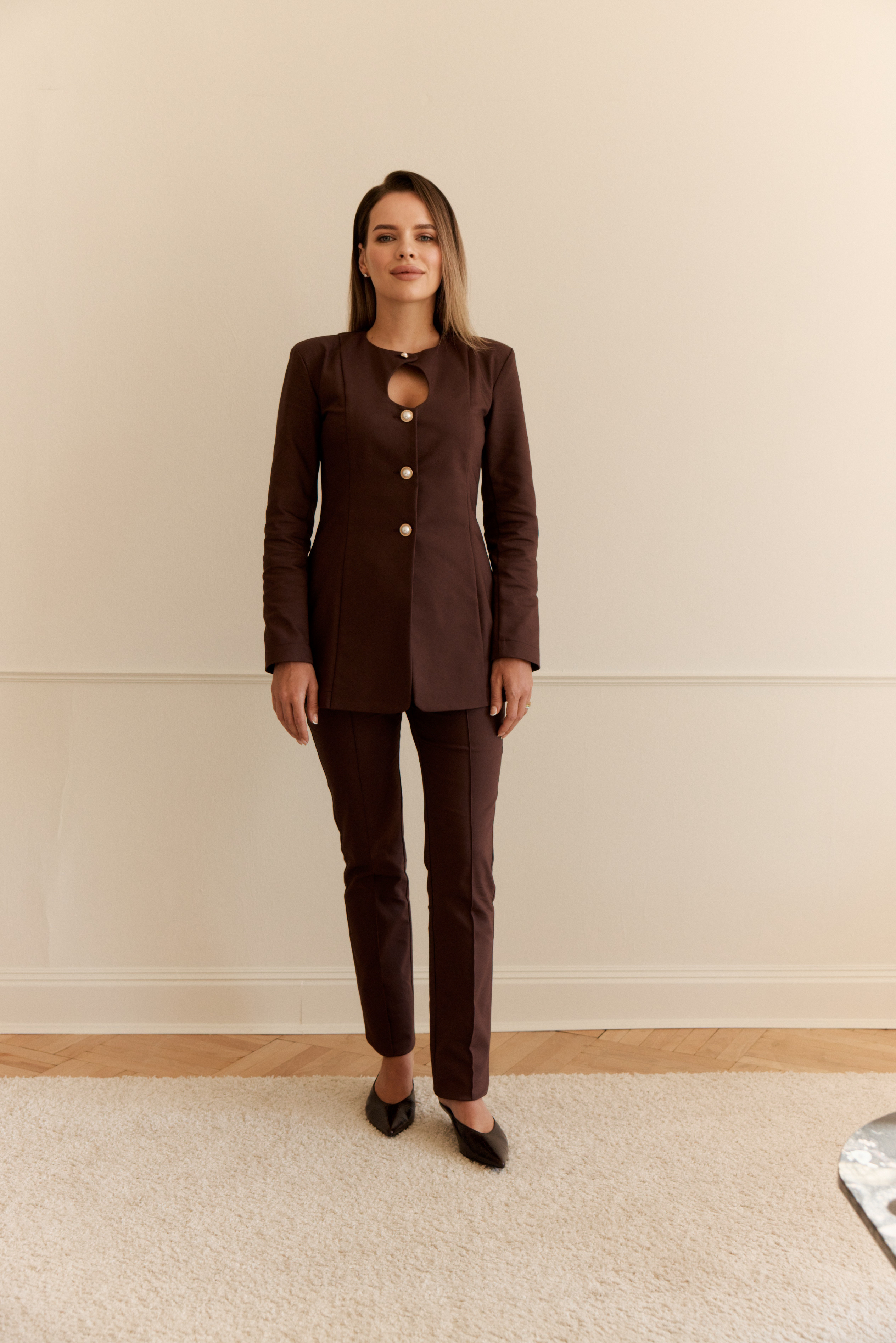 Для оформления предзаказа обращайтесь к нашим менеджерам в официальный аккаунт в телеграм @zhivagomoda Лимитированная коллекция в ограниченном размерном ряду (40-48). Модель посвящена несравненной Монике Беллуччи — итальянской актрисе и олицетворению страстного шика. Модель отличается деликатным фигурным декольте-каплей, украшена керамическими пуговицами. Прямой линия плеч, длинные рукав гармонично сочетаются с приталенным силуэтом.