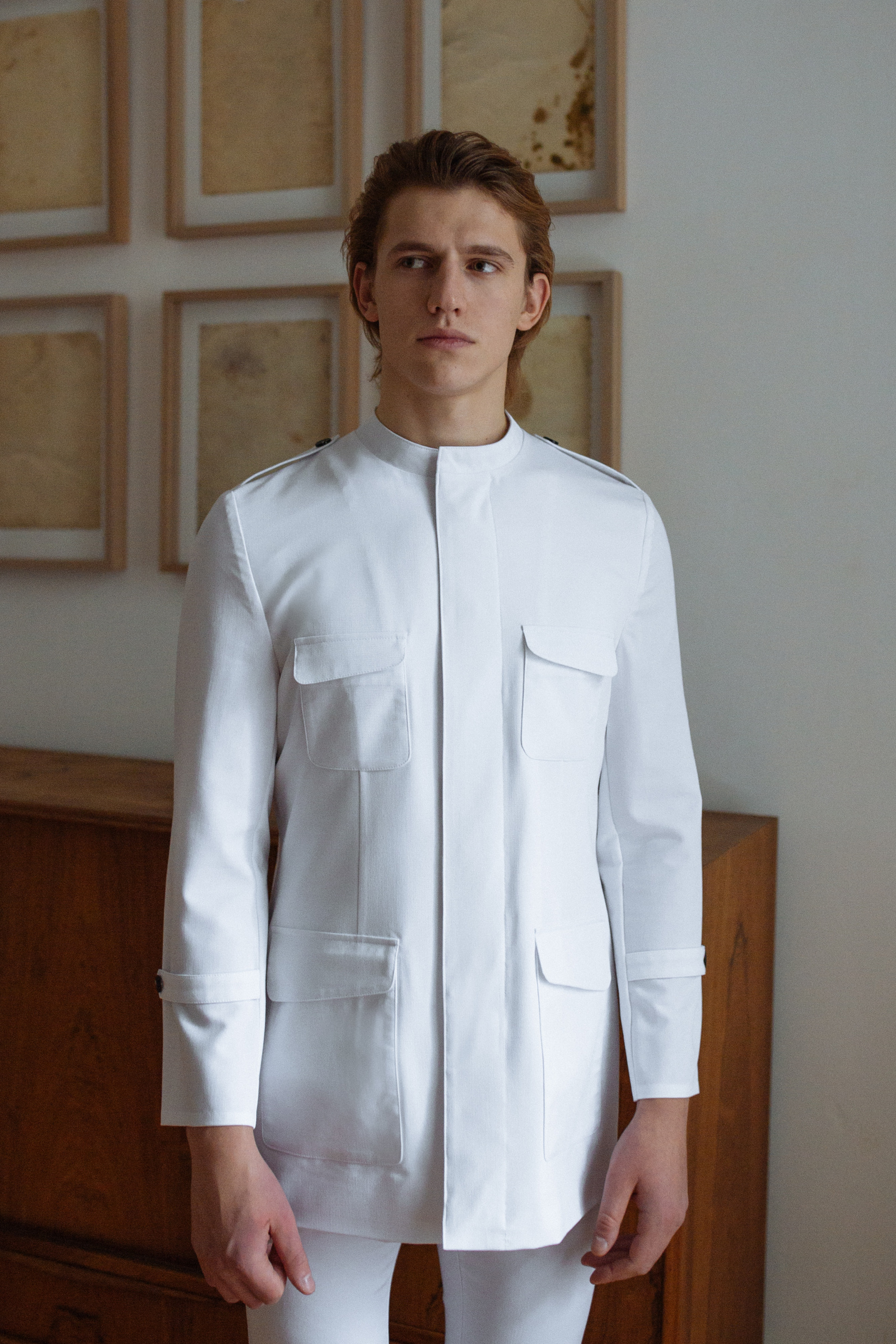 Мужской медицинский китель с воротником стойкой. карманами, погонами и патами. Нанесение Вашего логотипа или имени на наши модели придает особенный стиль и элегантность. Оставьте комментарий при оформлении заказа и наш менеджер рассчитает стоимость нанесения имени или логотипа.Уточняйте наличие моделей вашего размера у менеджеров по телефону +7 985 744-59-99.