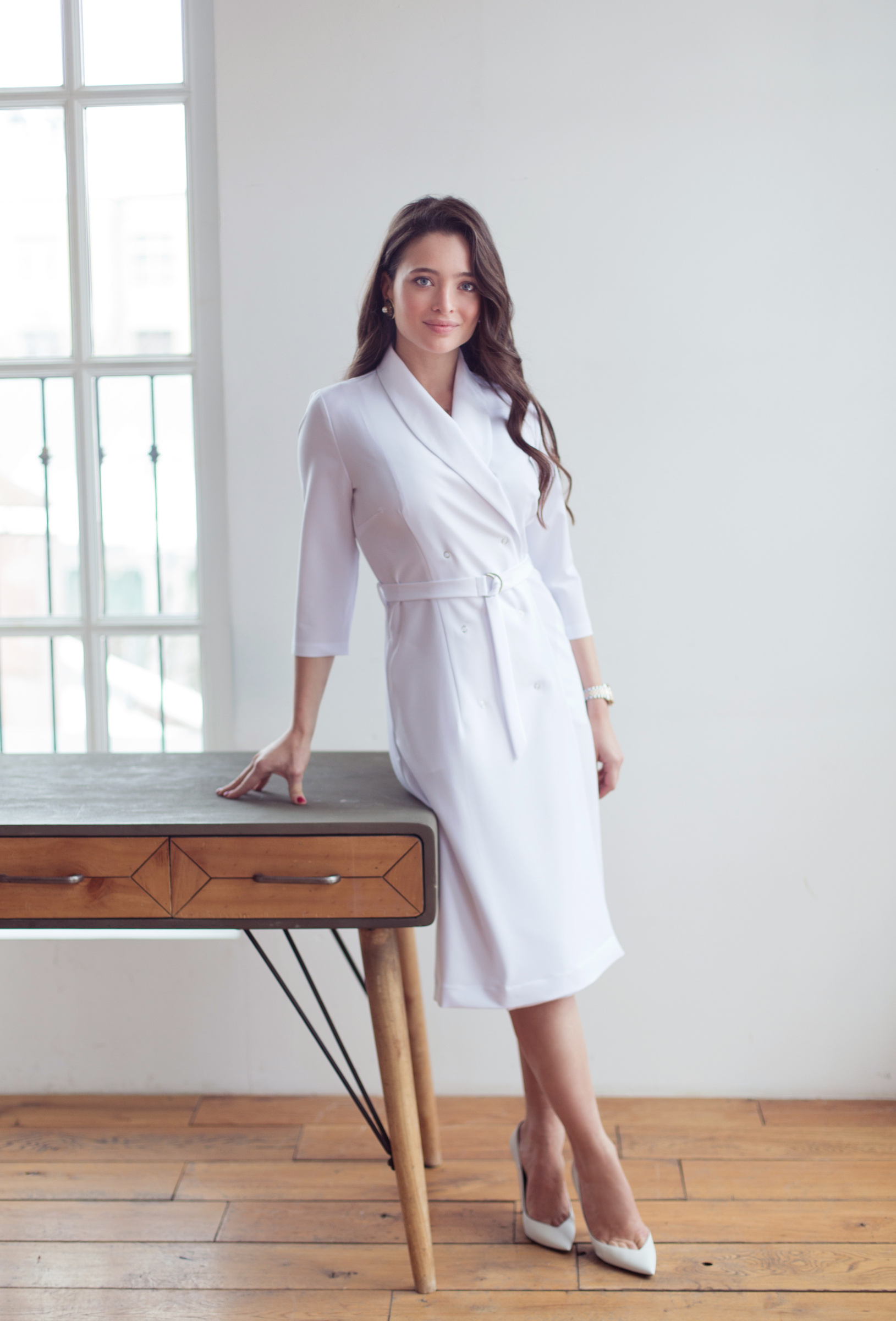 Платье с шалевым воротником и глубоким запахом надежно фиксируется двумя рядами кнопок. Модель с удобными функциональными карманами декорирована элегантным кольцевым поясом. Нанесение Вашего логотипа или имени на наши модели придает особенный стиль и элегантность. Оставьте комментарий при оформлении заказа и наш менеджер рассчитает стоимость нанесения имени или логотипа. Уточняйте наличие моделей вашего размера у менеджеров по телефону +7 985 744-59-99.