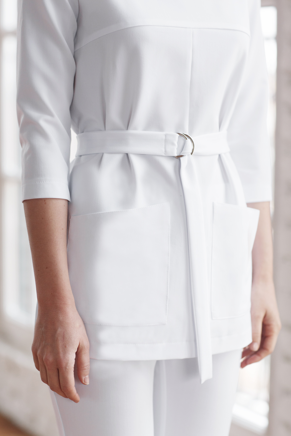 Туника с вырезом лодочкой и рукавами 3/4 декорирована элегантным поясом с полукольцами. Боковые вырезы и вместительные накладные карманы придают особый комфорт и утончённость. Нанесение Вашего логотипа или имени на наши модели придает особенный стиль и элегантность. Оставьте комментарий при оформлении заказа и наш менеджер рассчитает стоимость нанесения имени или логотипа. Уточняйте наличие моделей вашего размера у менеджеров по телефону +7 985 744-59-99. Уточняйте наличие моделей вашего размера у менеджеров по телефону +7 985 744-59-99.
