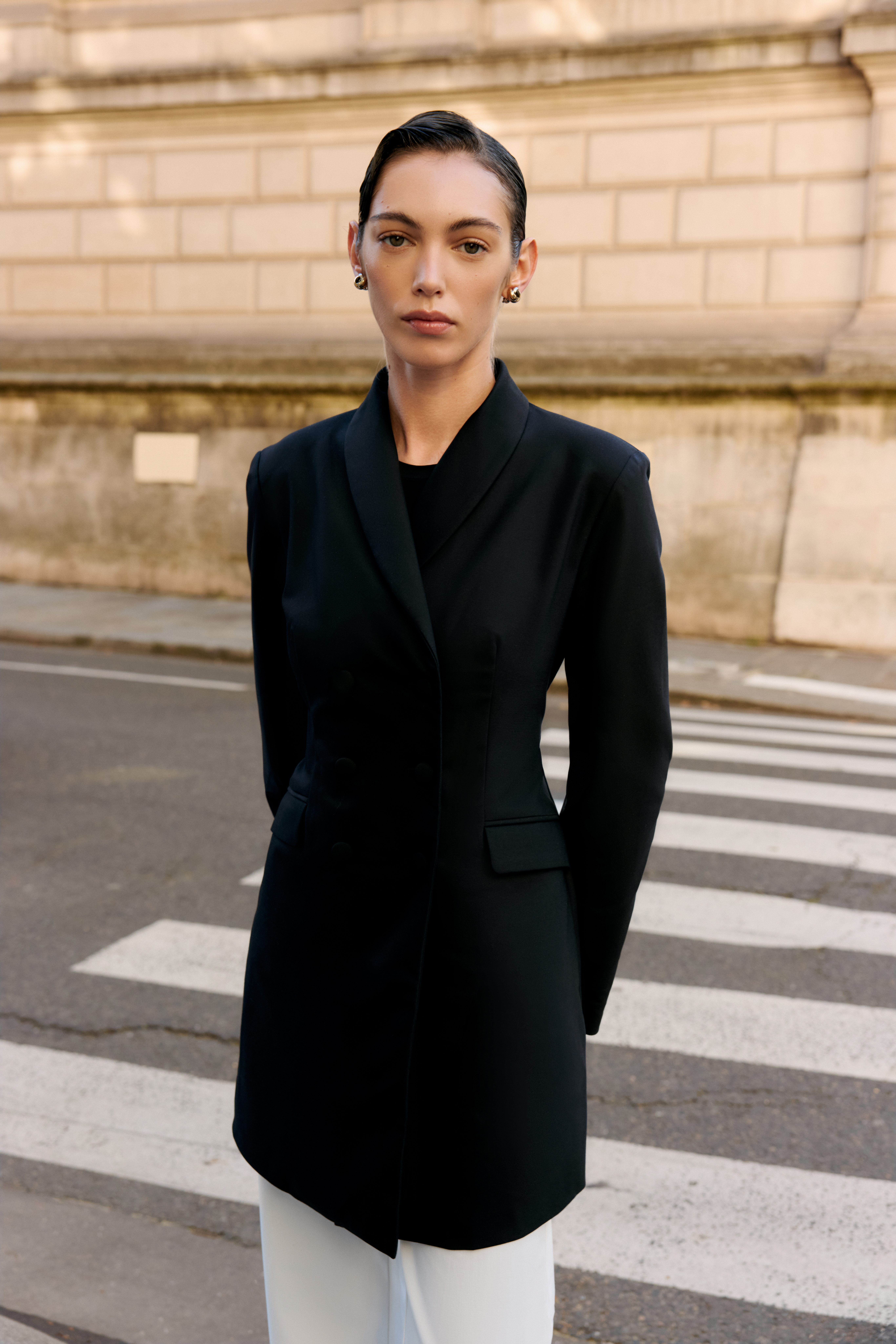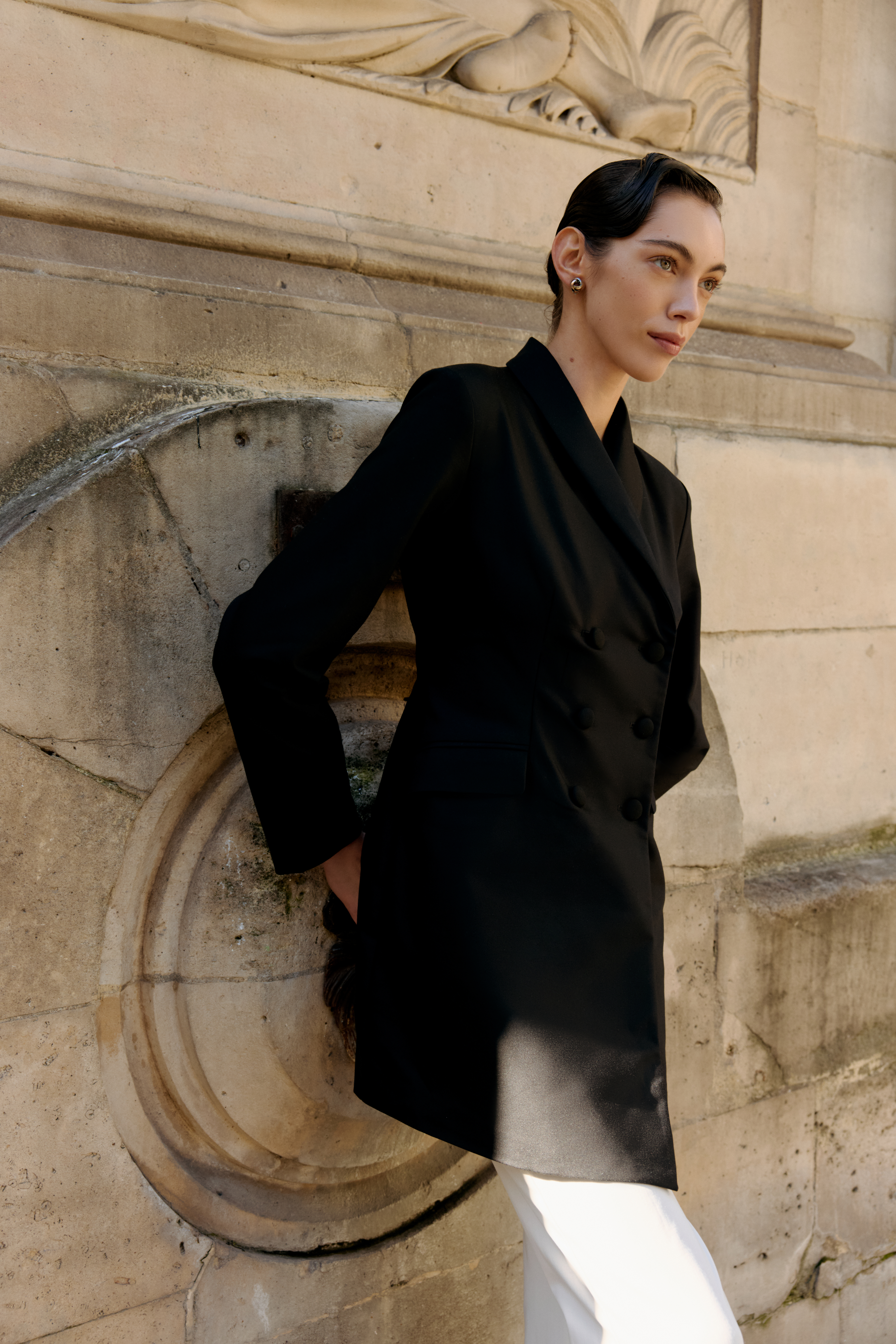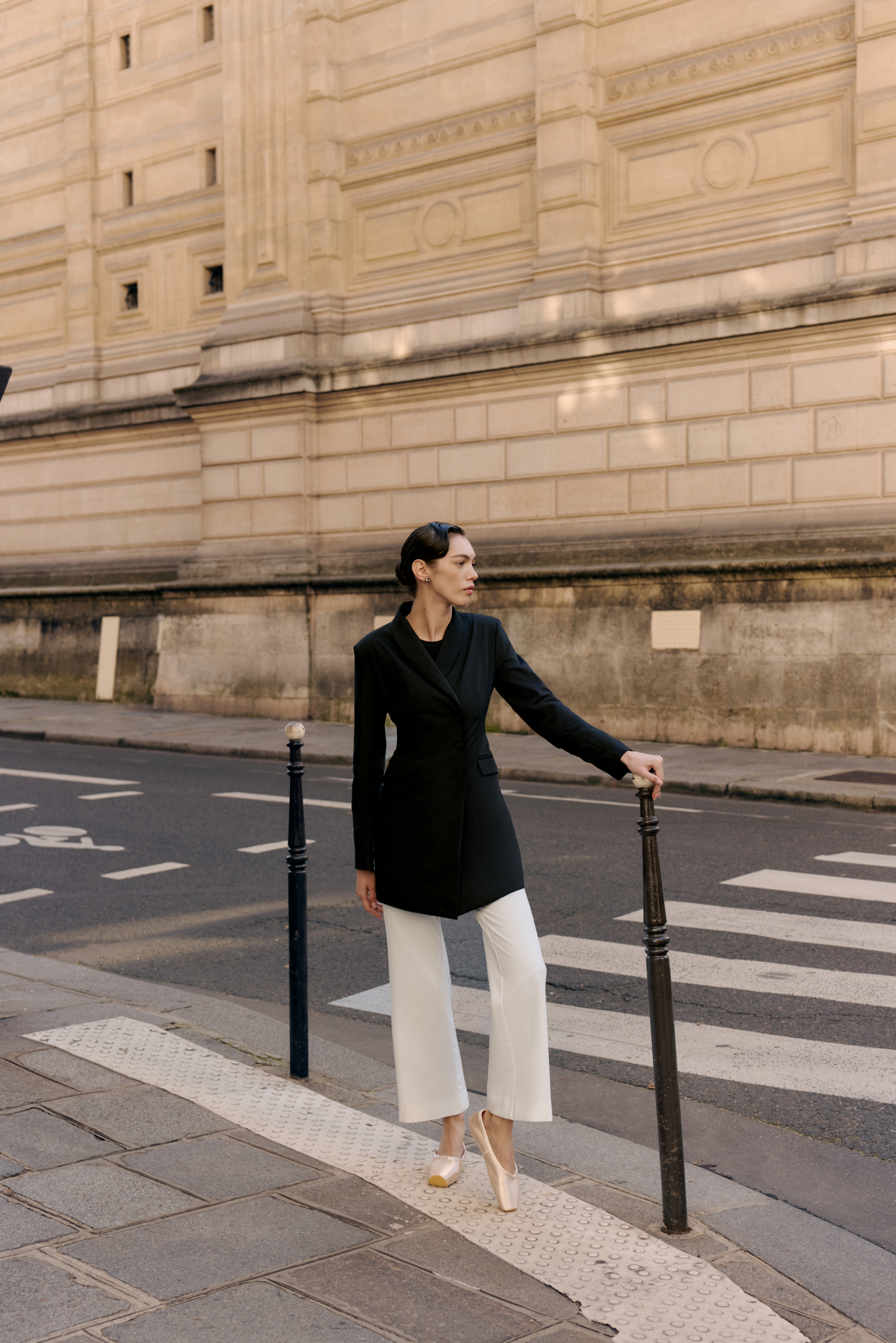 Наша ткань состоит на 49% из хлопка — она мягкая, дышащая и дарит исключительный тактильный комфорт. Переработанный полиамид 47% повышает износостойкость изделия и помогает ему сохранять форму, а эластан 4% - позволяет подчеркнуть фигуру, не ограничивая свободу движений.