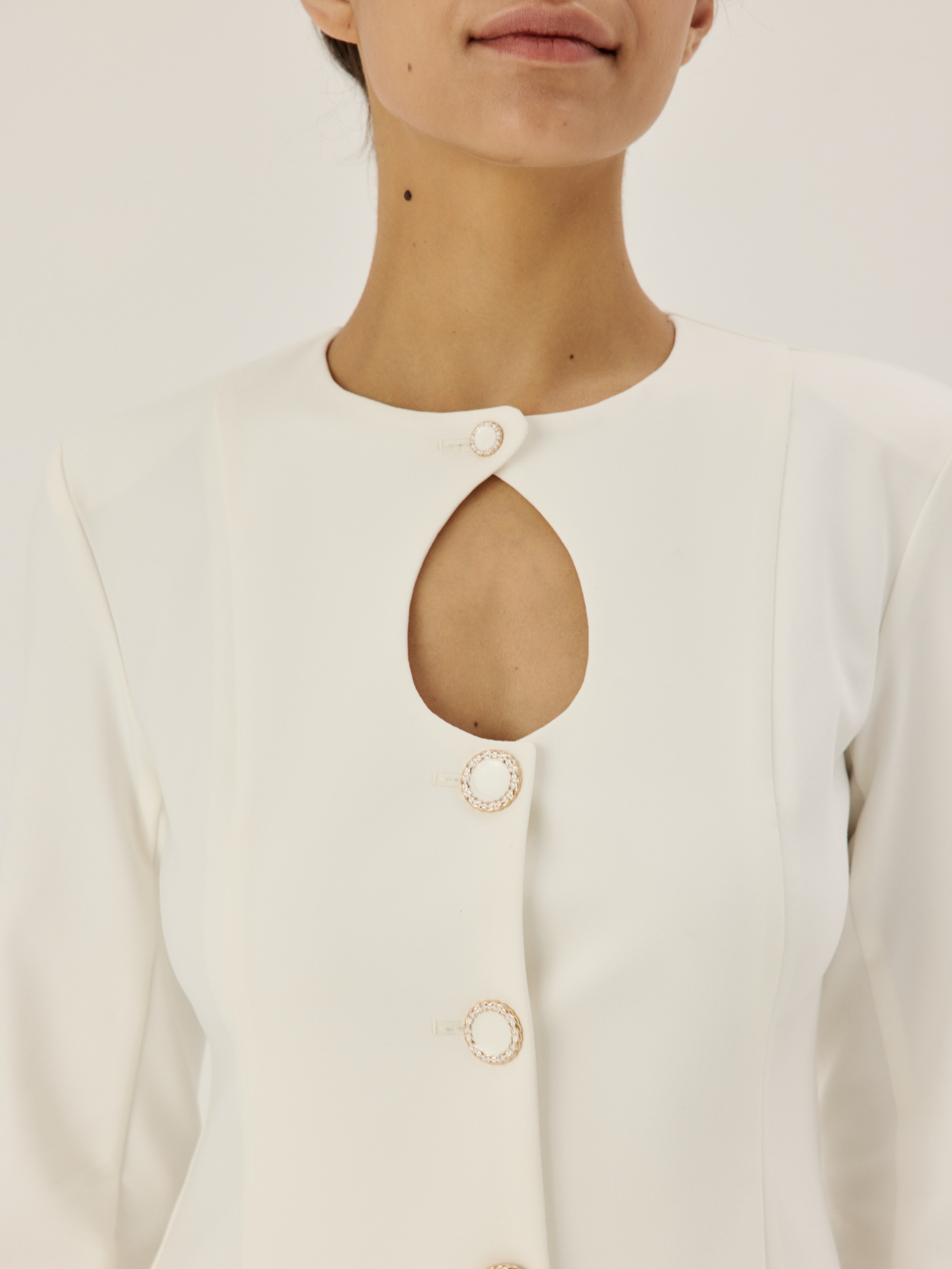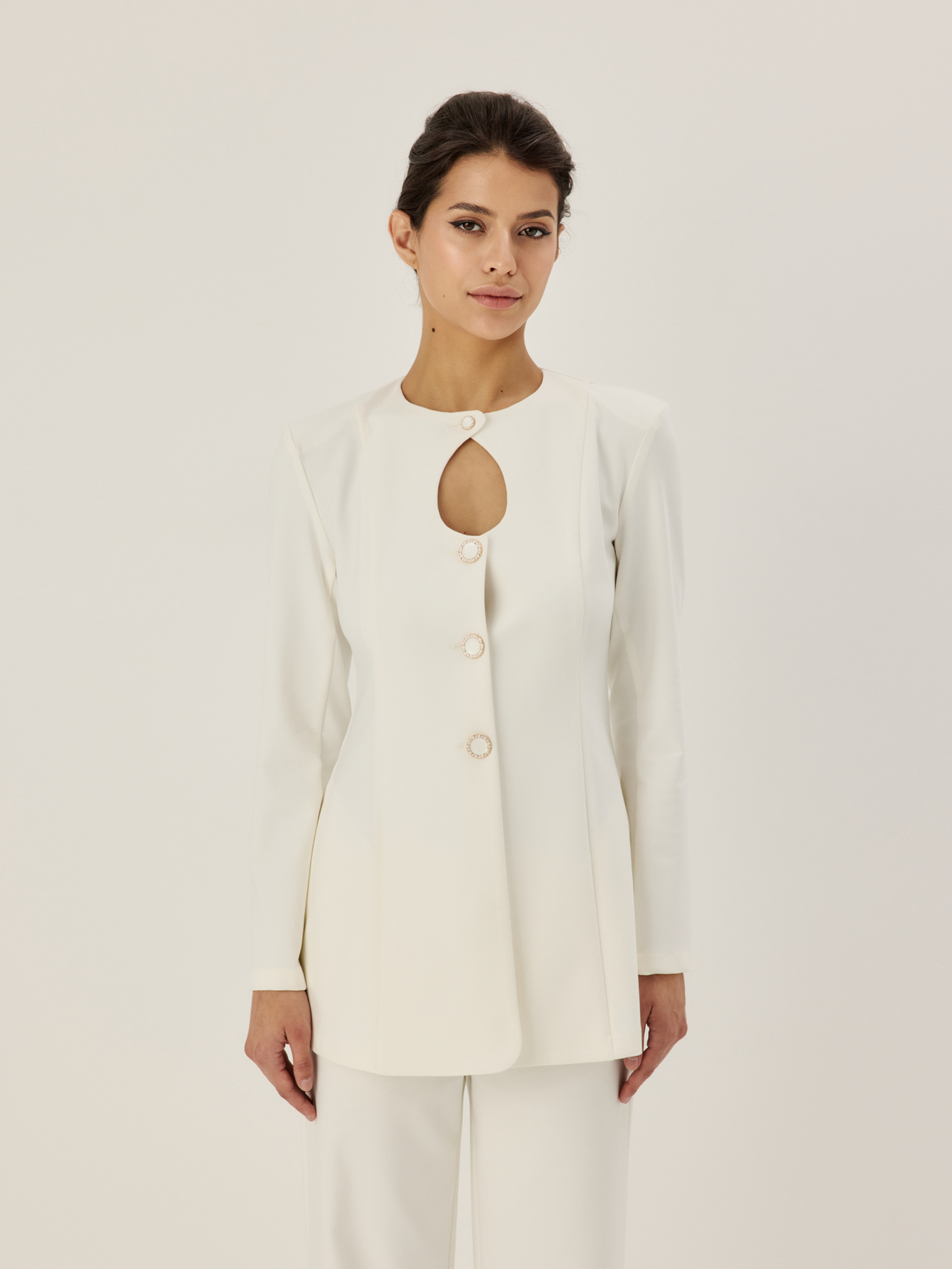 Модель посвящена несравненной Монике Беллуччи — итальянской актрисе и олицетворению страстного шика. Модель отличается деликатным фигурным декольте-каплей, украшена керамическими пуговицами. Прямой линия плеч, длинные рукав гармонично сочетаются с приталенным силуэтом.