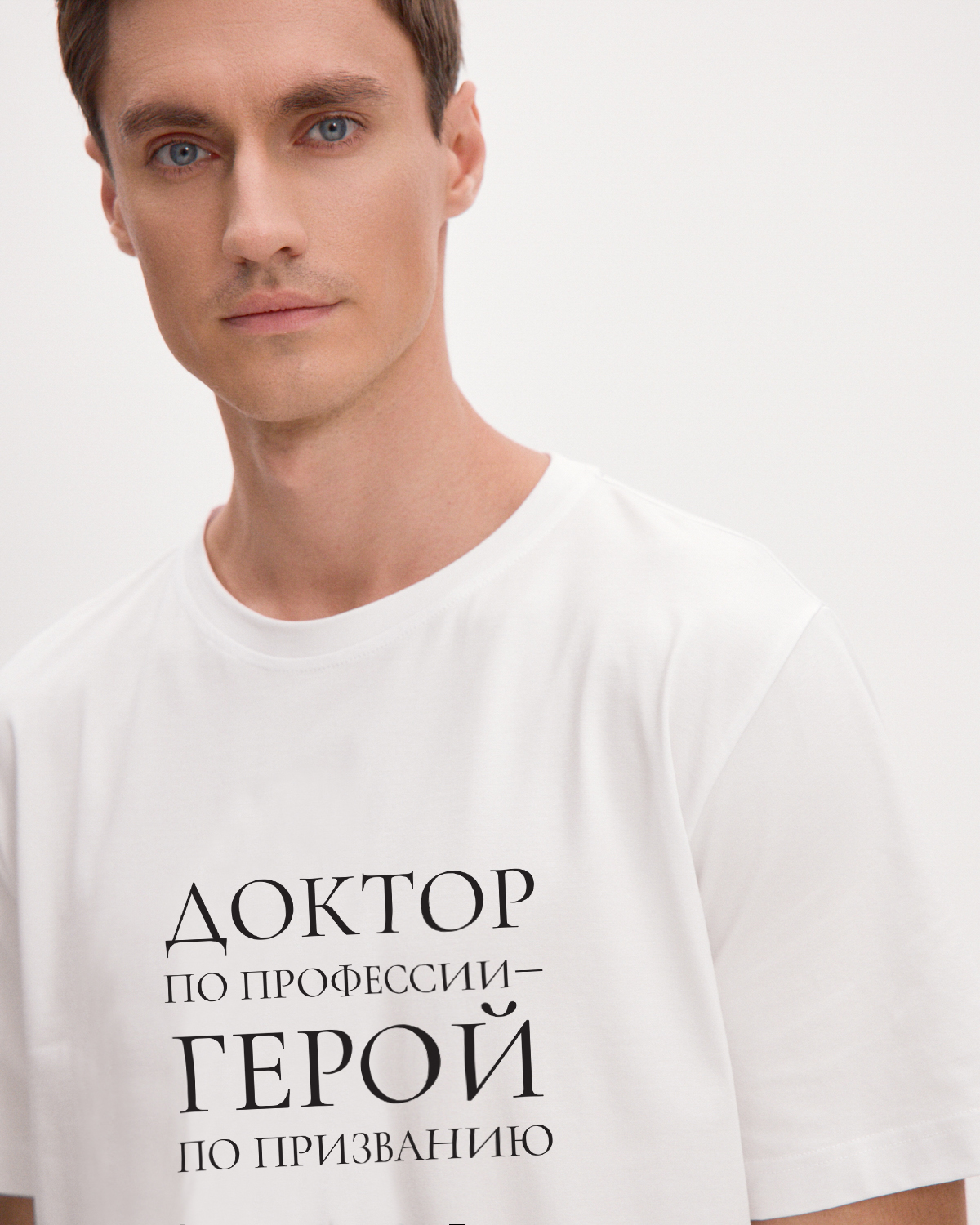 Футболка «Доктор по профессии – герой по призванию» Коллекция, созданная в рамках акции Doctor Zhivago by Mila P. совместно с благотворительным фондом «ГЕРОИ» , c вдохновляющими слоганами посвящена докторам – послание уважения и поддержки всем медицинским сотрудникам от пациентов. В основе акции — идея сказать слова благодарности тем, кто каждый день помогает нам сохранить здоровье.