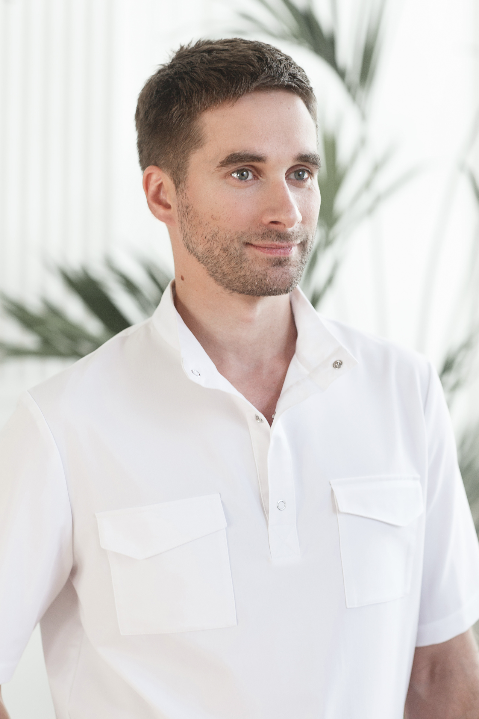 Мужская медицинская туника- поло с коротким рукавом и вместительными карманами. Нанесение Вашего логотипа или имени на наши модели придает особенный стиль и элегантность. Оставьте комментарий при оформлении заказа и наш менеджер рассчитает стоимость нанесения имени или логотипа.