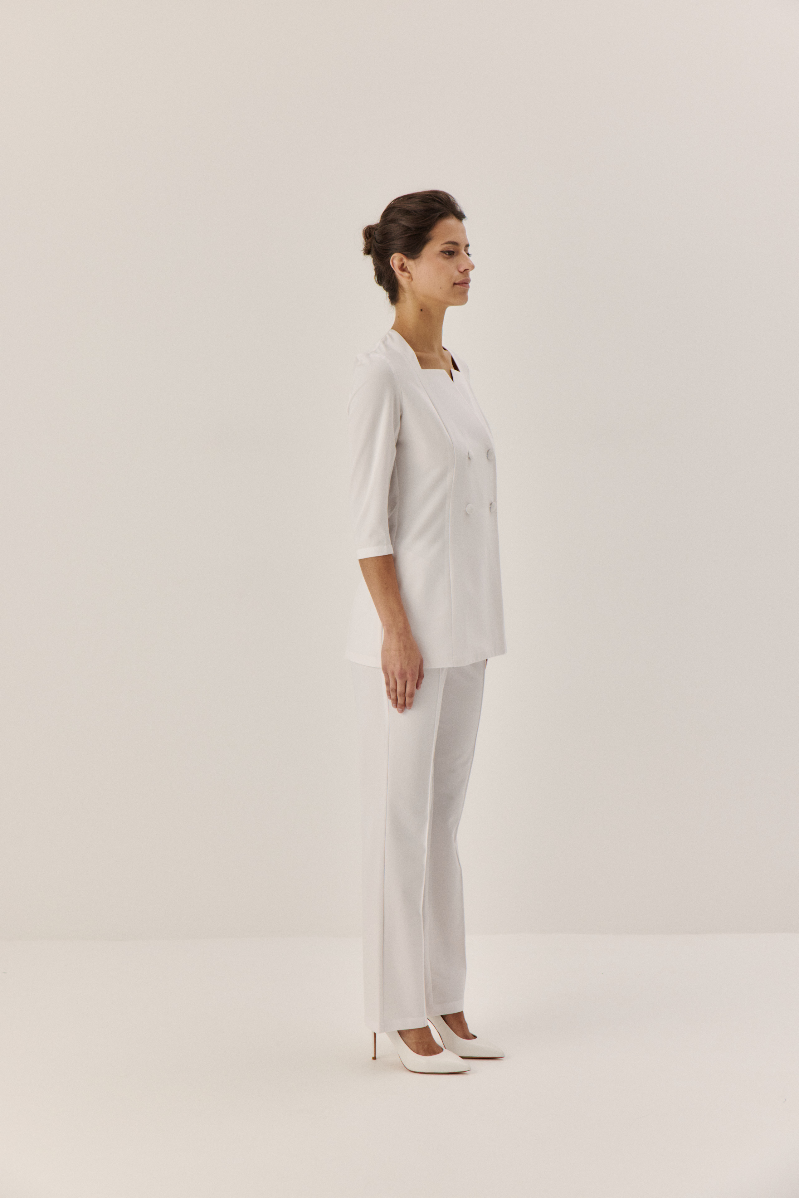 Брюки со стрелками прямого кроя. Уточняйте наличие моделей вашего размера у менеджеров по телефону +7 985 744-59-99.