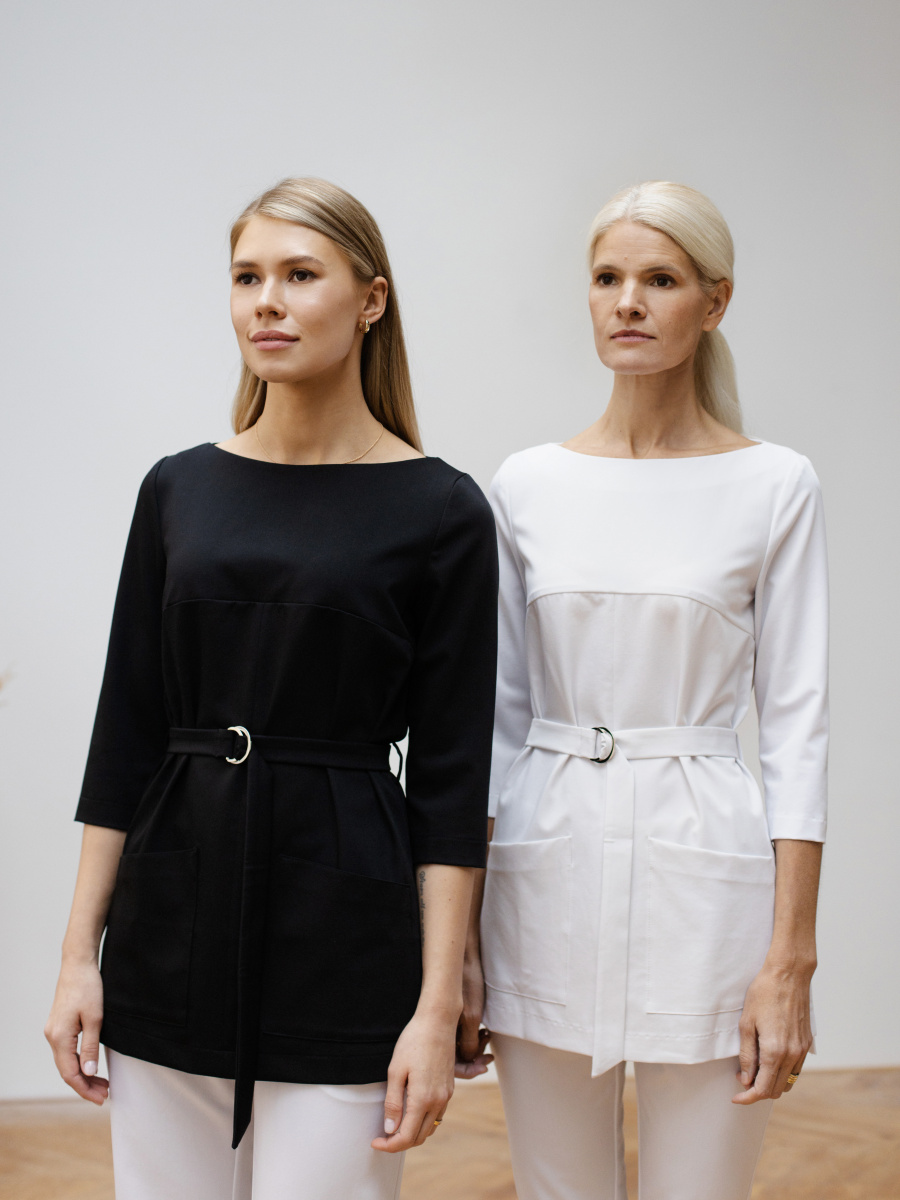 Туника с вырезом лодочкой и рукавами 3/4 декорирована элегантным поясом с полукольцами. Боковые вырезы и вместительные накладные карманы придают особый комфорт и утончённость. Нанесение Вашего логотипа или имени на наши модели придает особенный стиль и элегантность. Оставьте комментарий при оформлении заказа и наш менеджер рассчитает стоимость нанесения имени или логотипа. Уточняйте наличие моделей вашего размера у менеджеров по телефону +7 985 744-59-99. Уточняйте наличие моделей вашего размера у менеджеров по телефону +7 985 744-59-99.
