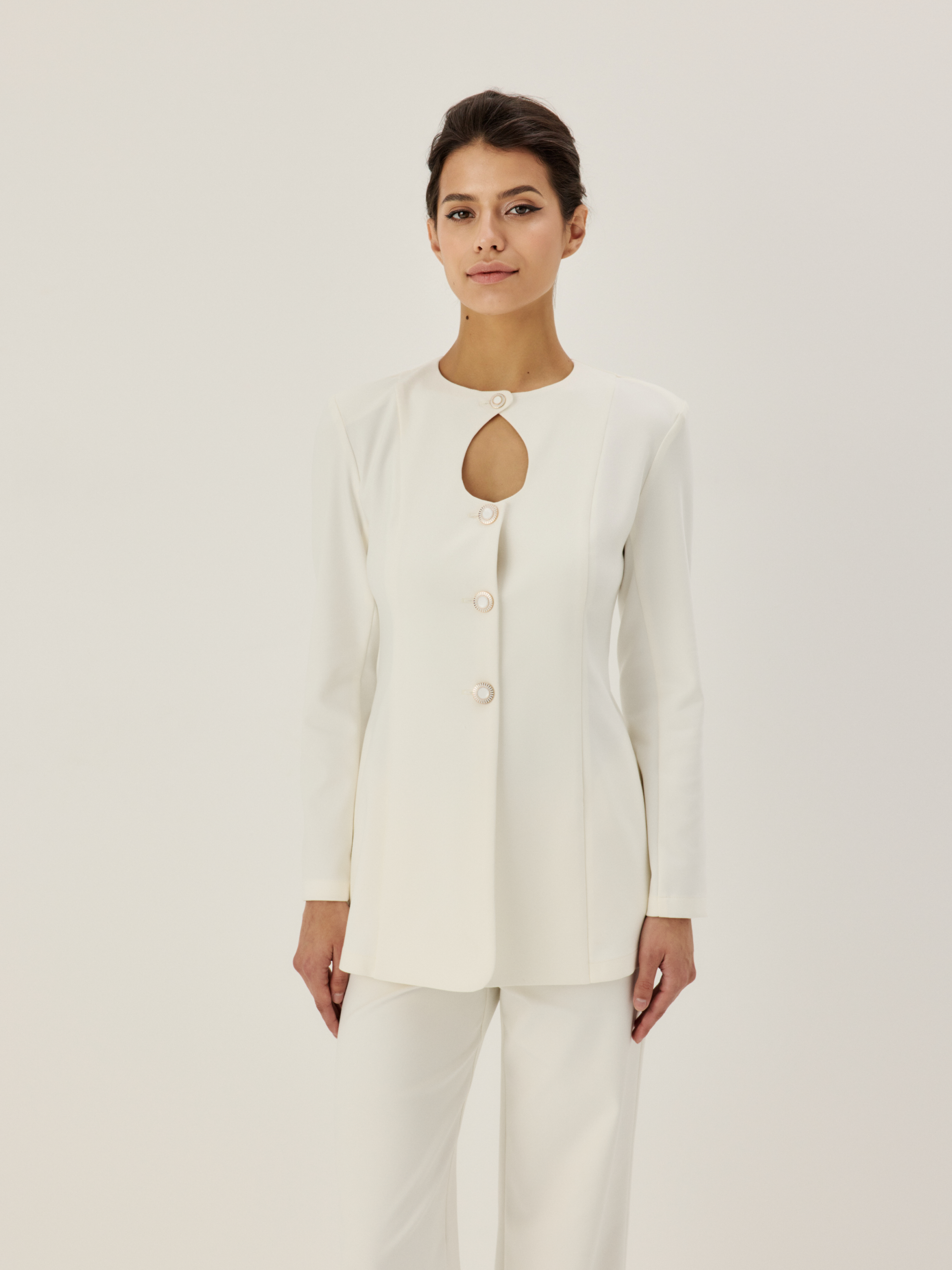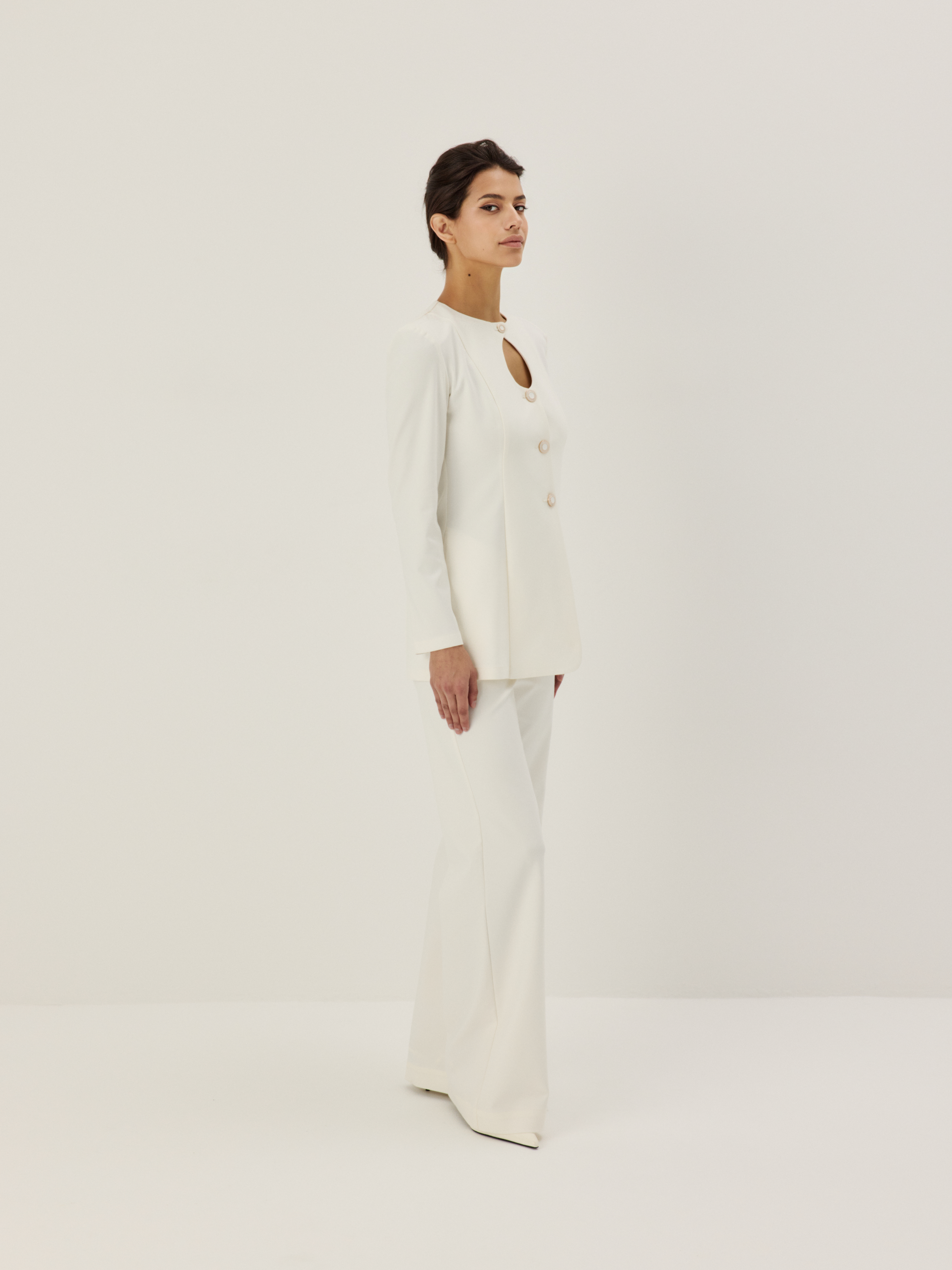 Модель посвящена несравненной Монике Беллуччи — итальянской актрисе и олицетворению страстного шика. Модель отличается деликатным фигурным декольте-каплей, украшена керамическими пуговицами. Прямой линия плеч, длинные рукав гармонично сочетаются с приталенным силуэтом.